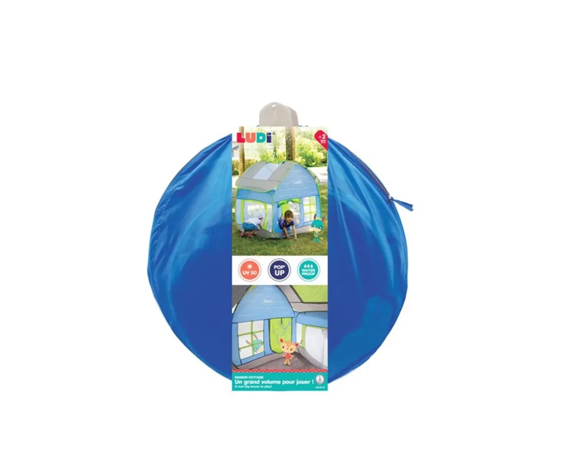 Esta casita de Ludi, está diseñada para disfrutar al aire libre. Su techo ofrece protección UV 50, cuenta con suelo impermeable, redes de ventilación y grandes aberturas con cortinas, lo que la convierte en un lugar cómodo y seguro para jugar en el jardín o en la terraza. Los peques podrán imaginar y explorar con total libertad.