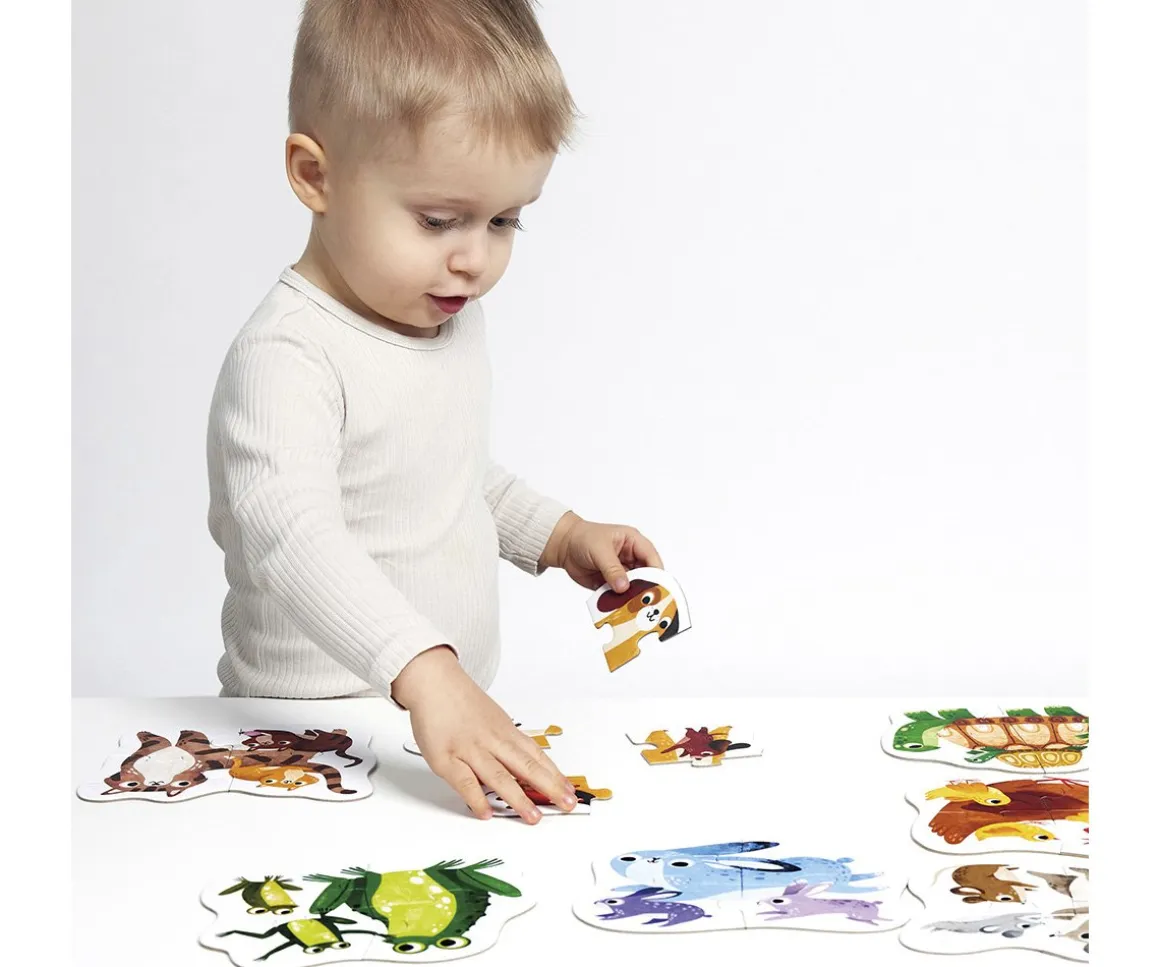Mi primer puzzle Baby Animals de ayuda a los peques a desarrollar su destreza, reconocer a los animales, sus sonidos y también los números gracias a su ilustración de la mamá o papá animal y sus bebés.