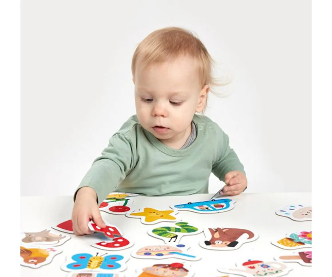 Mi primer puzzle Happy Pairs de ayuda a los peques a desarrollar su destreza, reconocer a los animales, sus sonidos y colores.