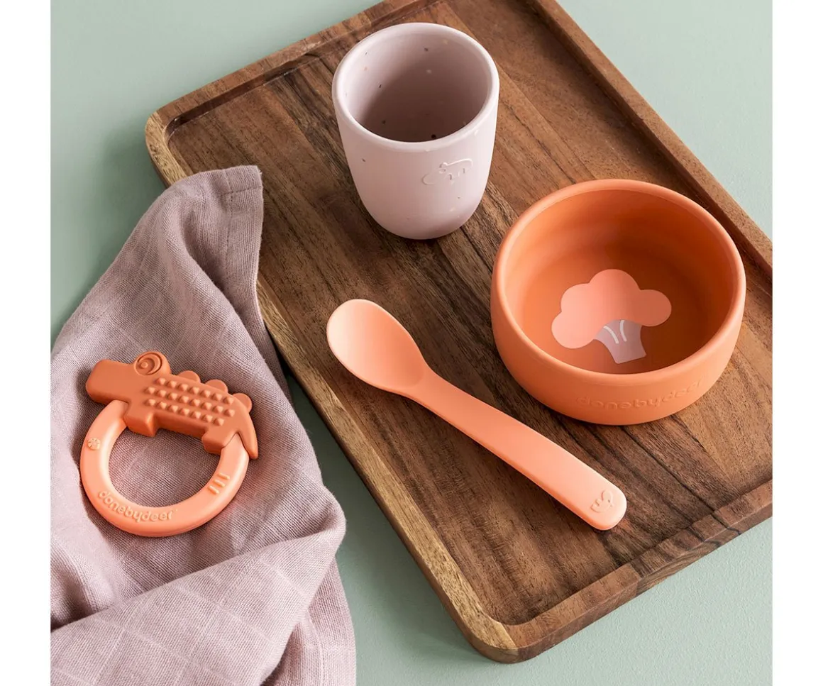 Esta primera vajilla de silicona antideslizante y fácil de agarrar hará que la hora de la comida sea divertida para tu bebé.