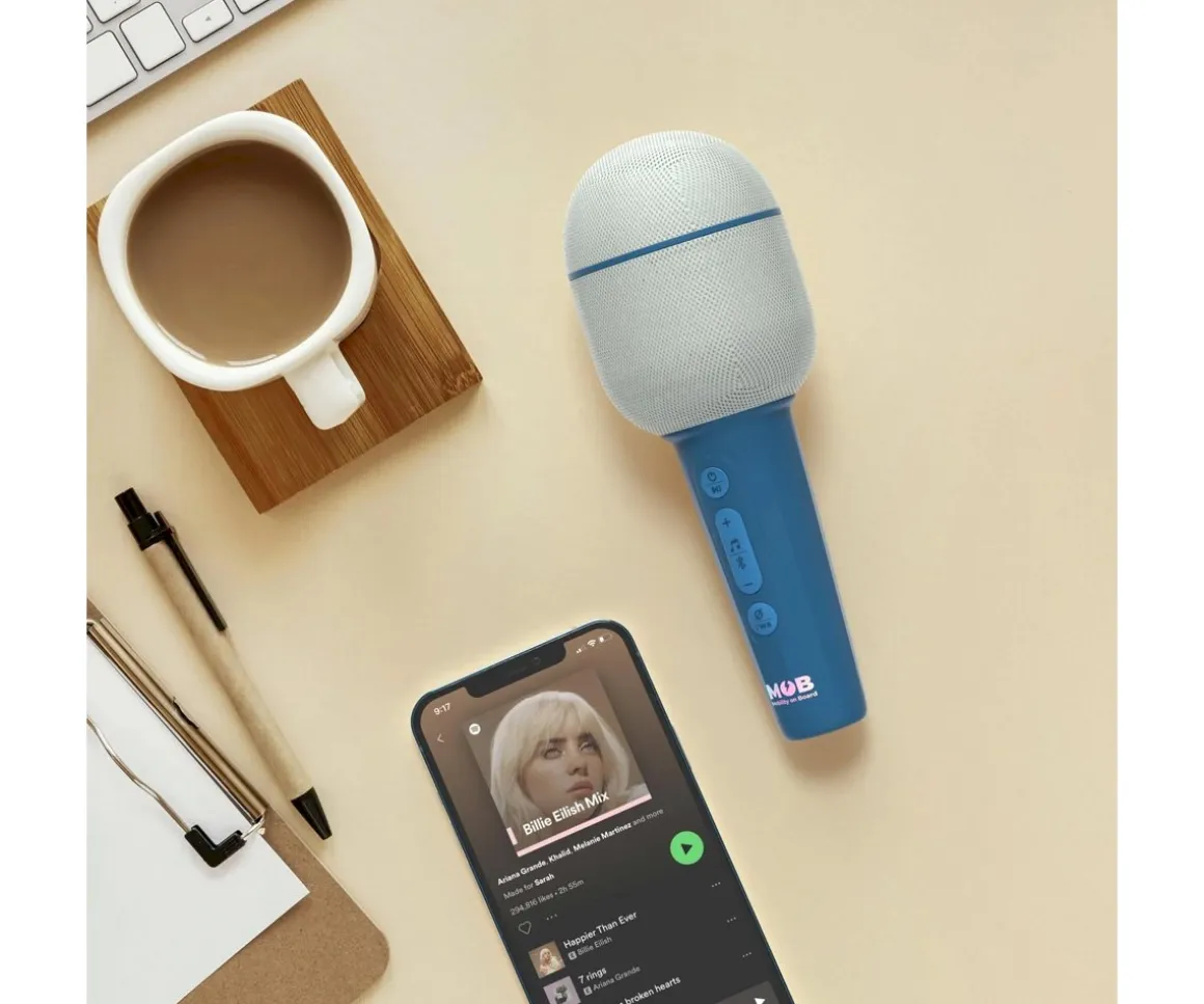El micrófono inalámbrico todo en uno Miro Groovy de MOB es genial para horas de diverisón gracias a sus efectos de sonido, divertidos cambios de voz y conectividad bluetooth. ¡Toda la familia lo pasará en grande con el micrófono de MOB!