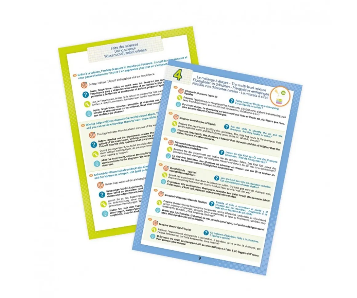 - Incluye cartas ilustradas paso a paso de cada experimento