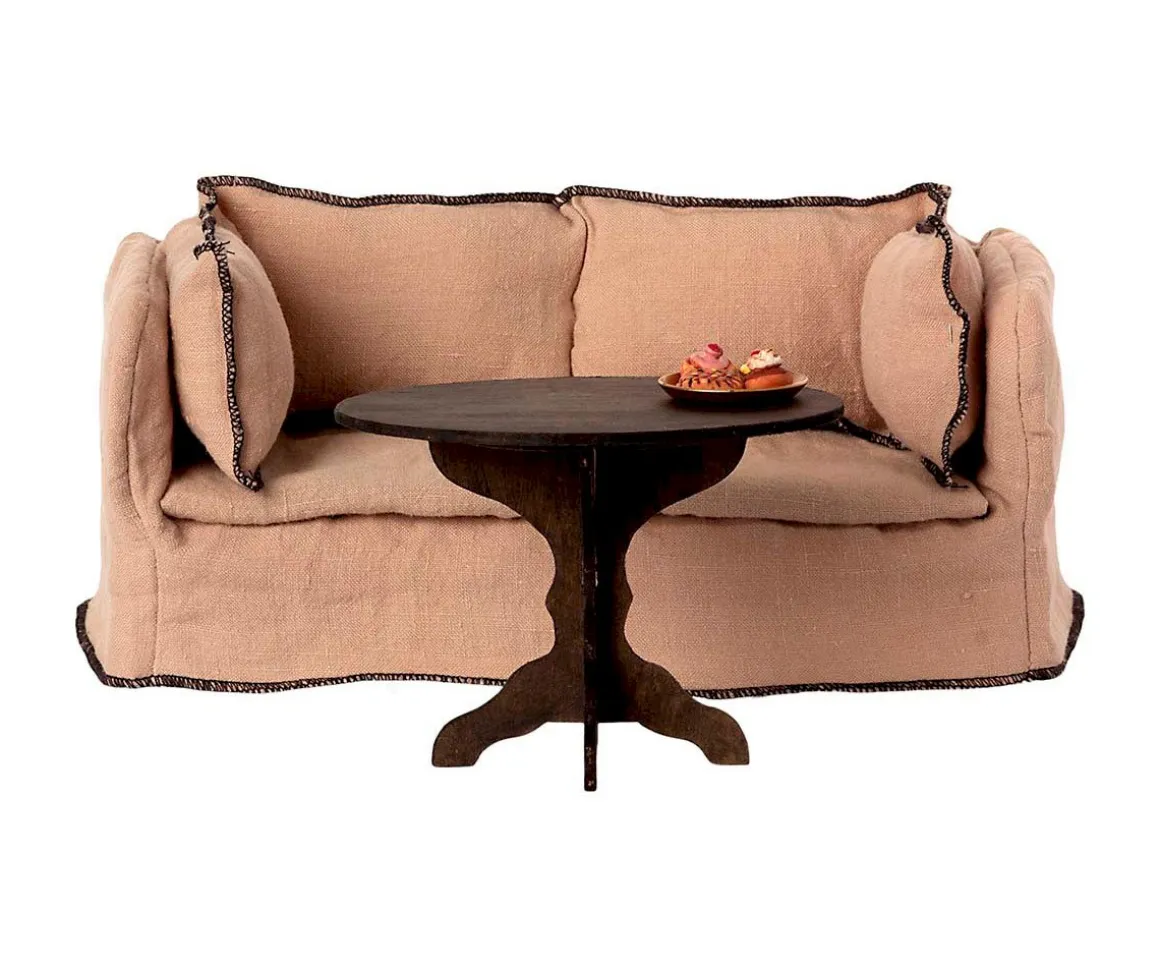 Preciosa mesa de café en la que nuestros amiguitos Maileg podrán disfrutar de grandes ratitos juntos.