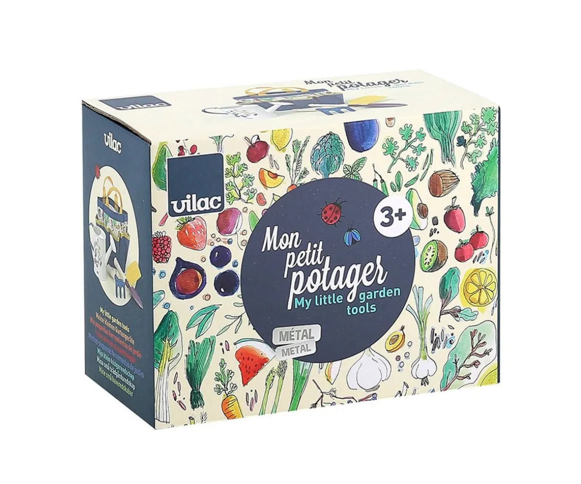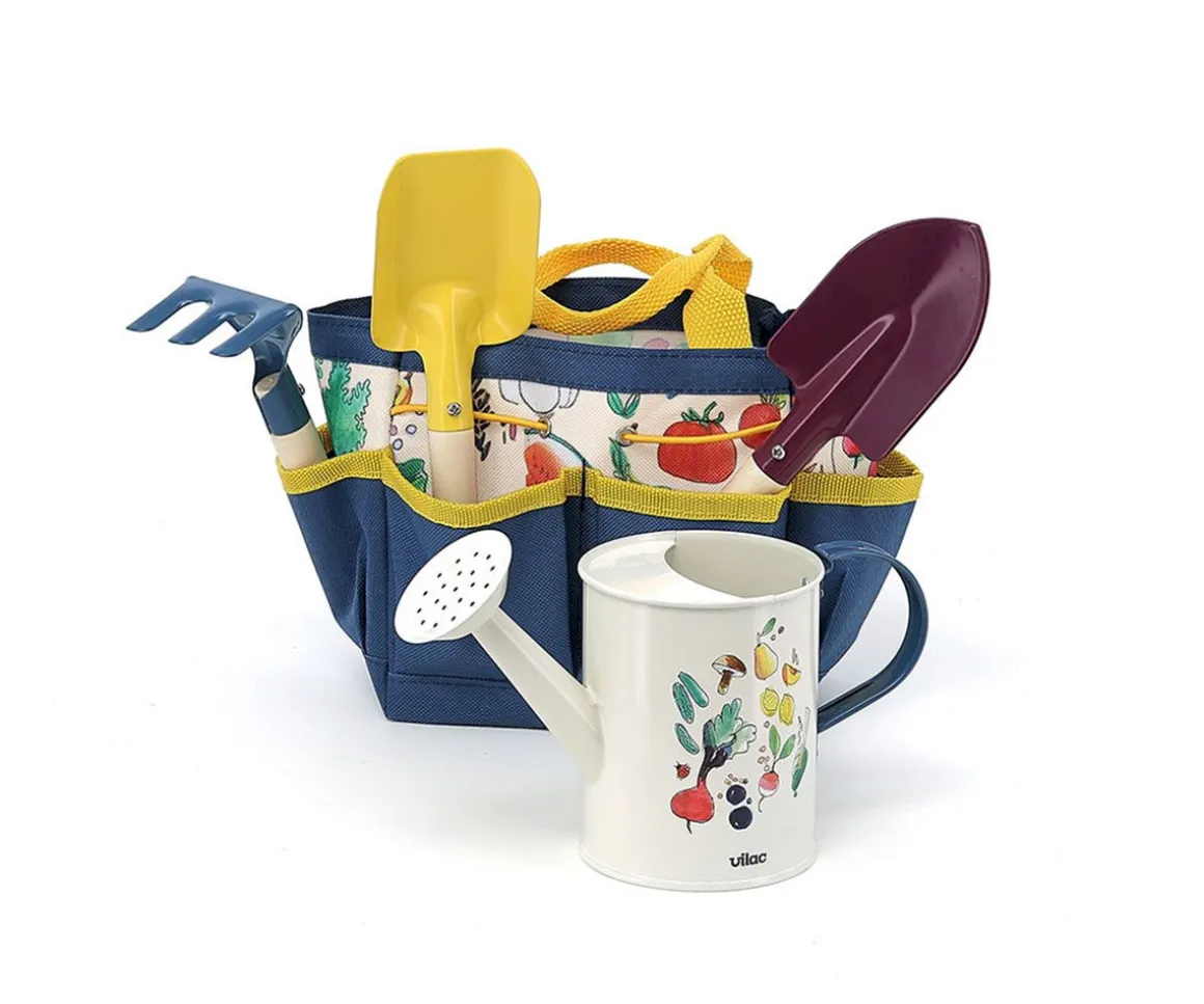Este pequeño set de jardineria de Vilac, incluye una bonita bolsa con asas y herramientas de jardinería de madera y metal, diseñadas para manos pequeñas.