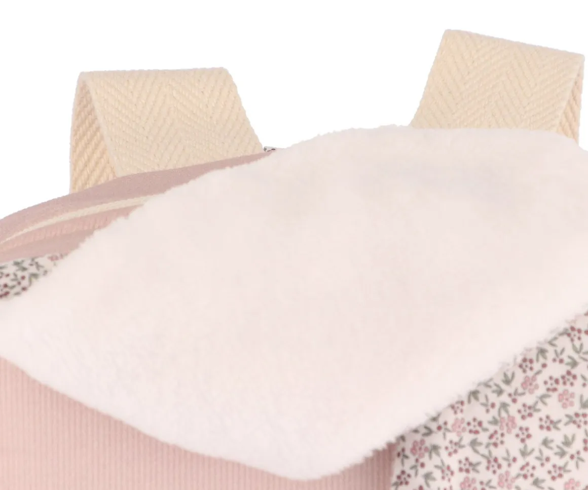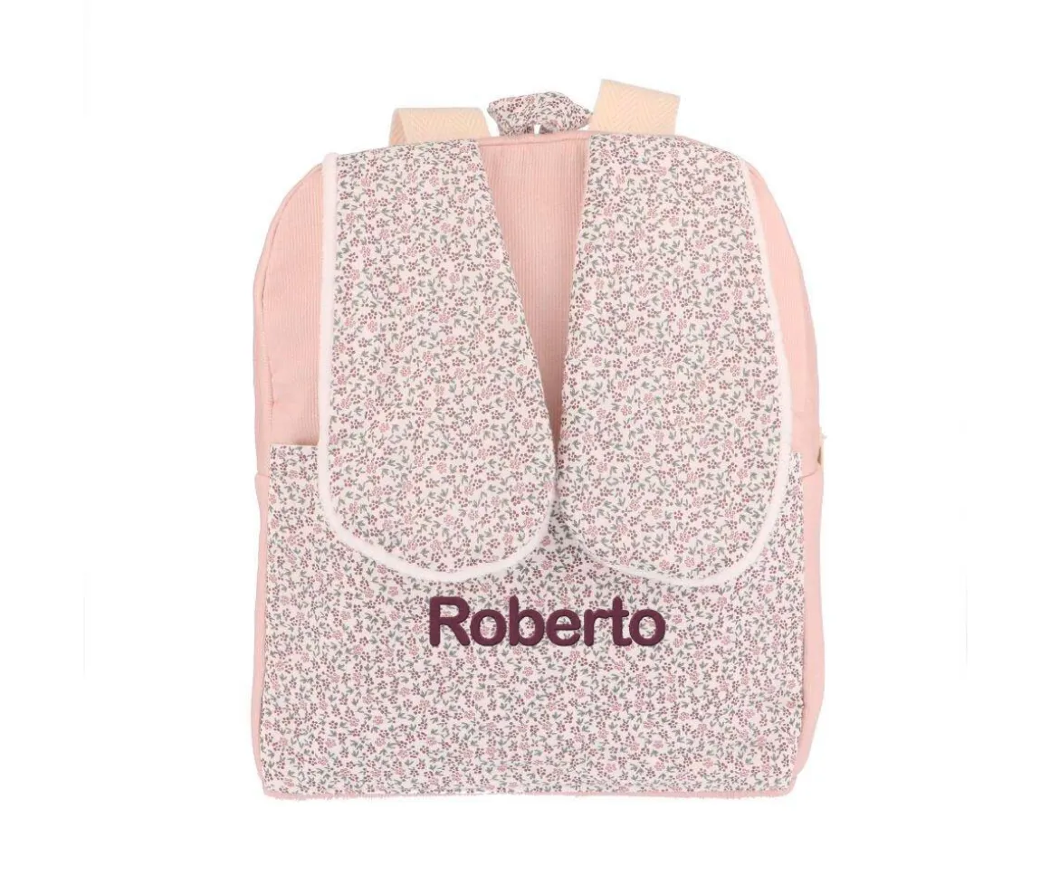 Mochila de tela, con simpáticas orejas, ideal para llevar las mudas a la escuela infantil o primeros cursos del colegio. Se puede colgar fácilmente en una percha o gancho gracias al asa que lleva.
