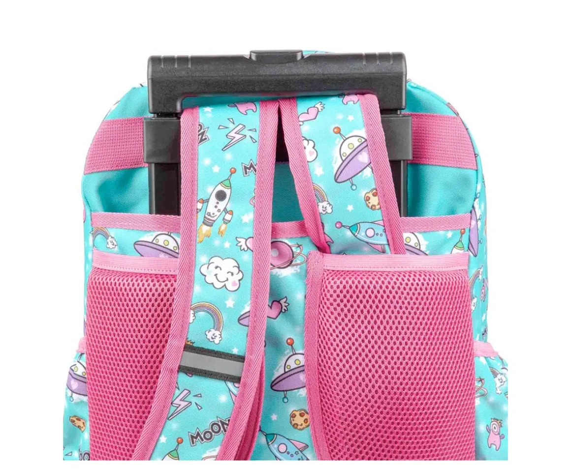 Su diseño con carro integrado, doble barra y tirantes acolchados la hace muy versátil, perfecta tanto para llevarla rodando como a la espalda. Cuenta con dos compartimentos principales de gran tamaño, su base es rígida y resistente, protegiendo el contenido contra golpes, mientras que los dos bolsillos laterales permiten llevar botellas de agua de forma segura.