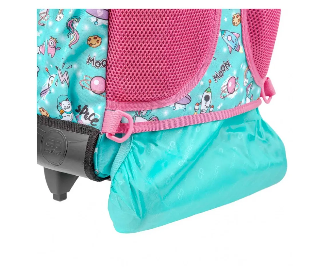 Además, incluye un protector para ruedas sucias, ideal para evitar manchas al usarla como mochila de espalda.