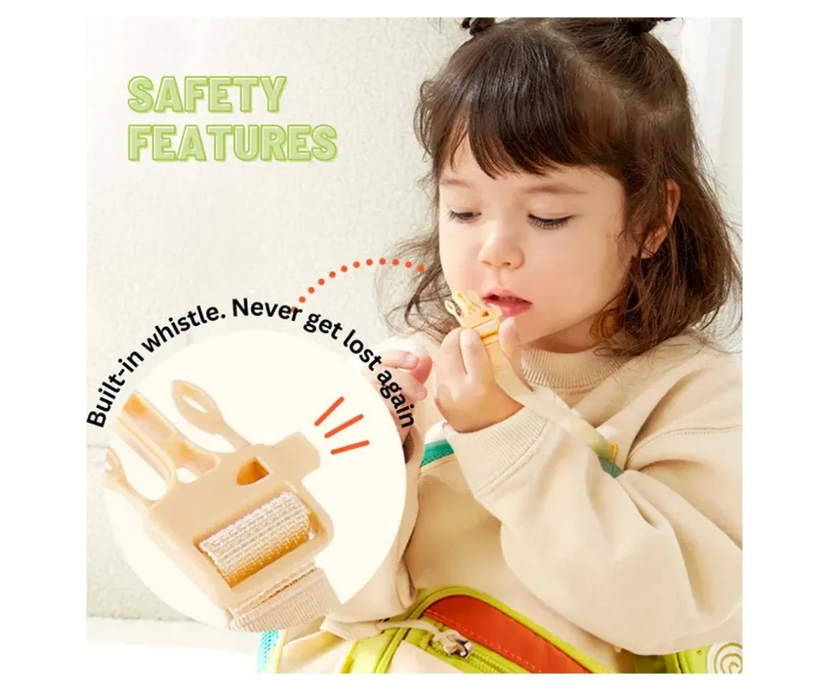 Esta mochila infantil incorpora un práctico detalle pensado para la seguridad de los peques: su clip de pecho incluye un silbato que podrán soplar en caso de pérdida o desorientación.