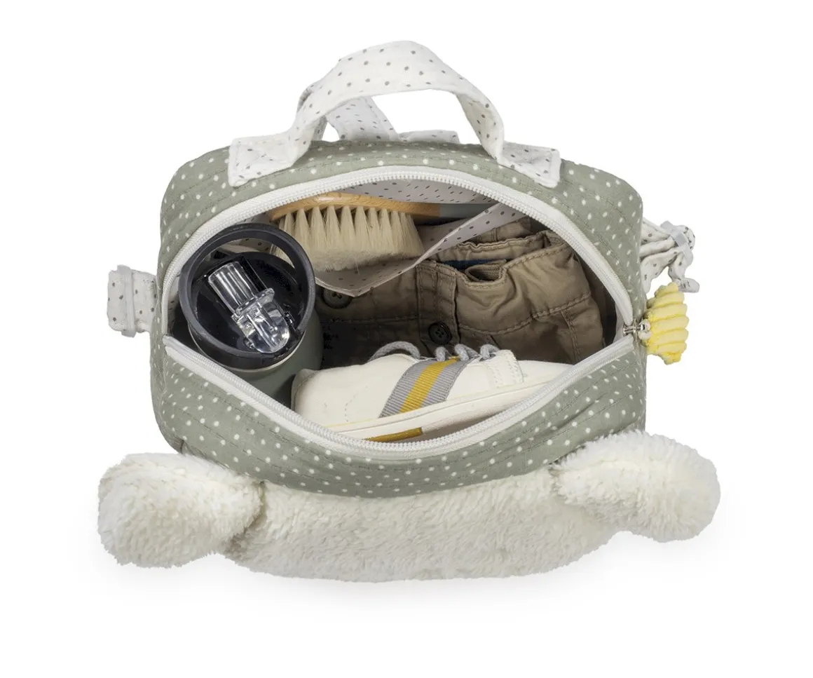 La mochila infantil de Walking Mum, con diseño de ratón y estampado de lunares, es perfecta para la guardería o primeros paseos del día a día. Compacta, suave y resistente; está hecha 100% de algodón, con cierre de cremallera, orejitas en relieve y correas ajustables. Ideal para llevar lo esencial, es segura, cómoda y fácil de limpiar.