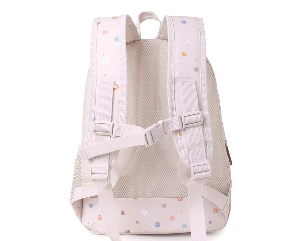 Mochila Escolar Mediana Personalizable de la Colección Vuelta al Cole Geometric Nature de Tutete que puedes personalizar con el llavero personalizable que incluyen de regalo.