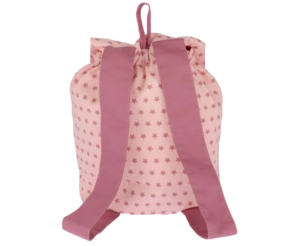Mochila de tamaño pequeño, de tela que la hace muy ligera para ir al colegio.