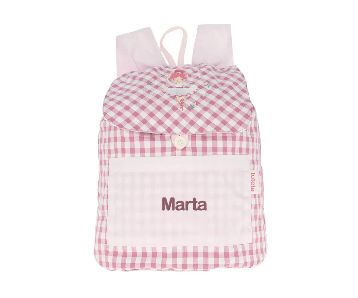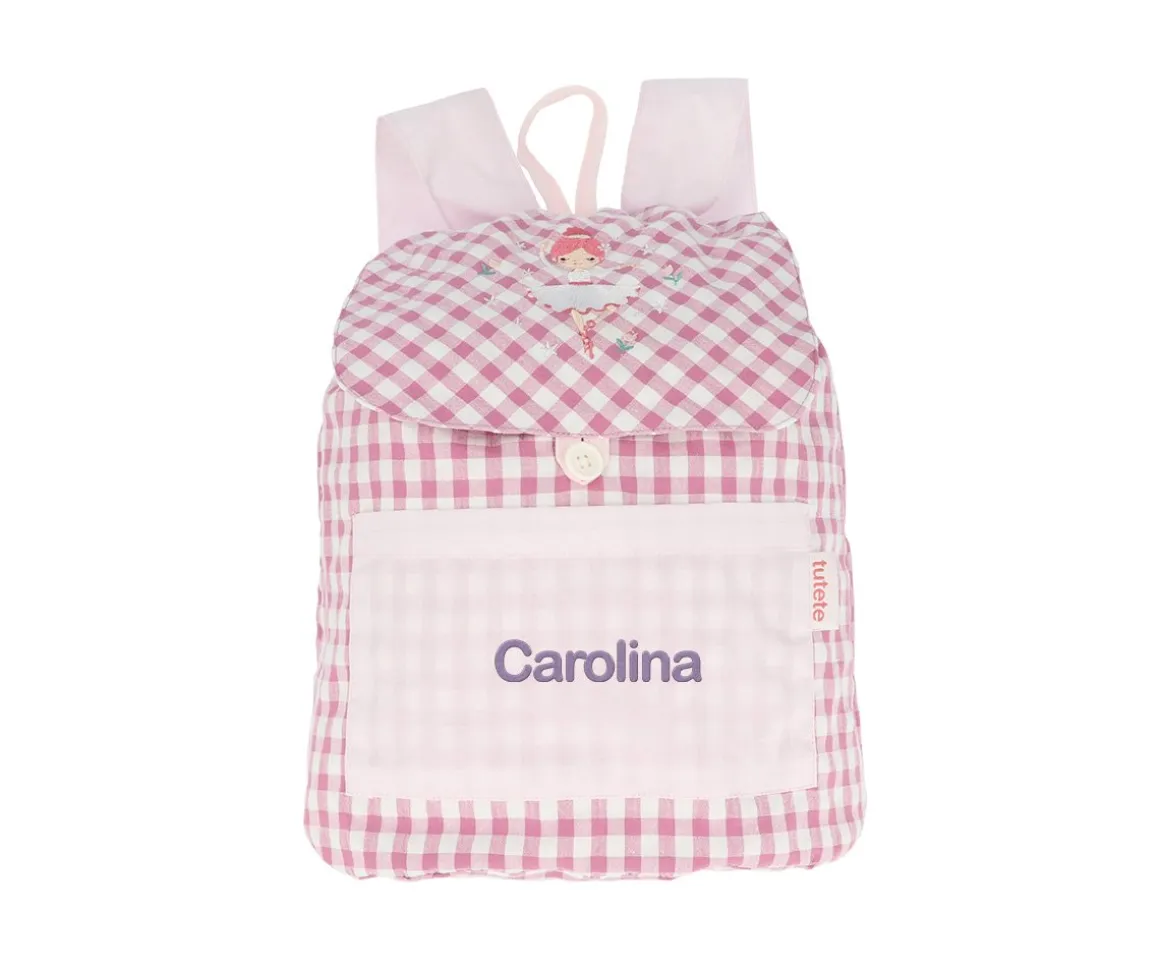 Las adorables mochilas de tela con dibujo bordado de las colecciones de Tutete Vuelta al Cole 2024 son de pequeño tamaño, perfectas para ir a la escuela infantil y llevar la ropa de cambio, la merienda o almuerzo y mucho más.