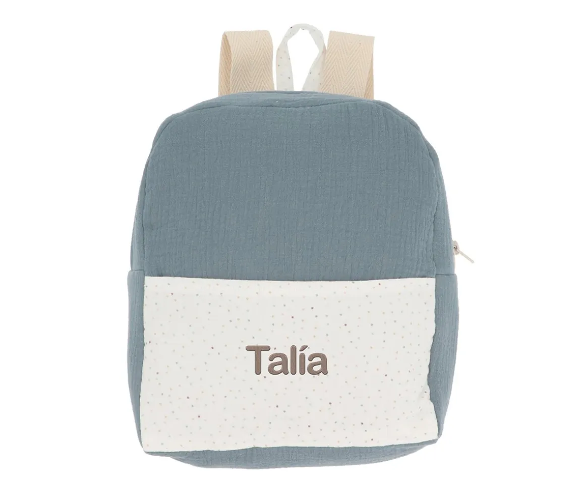 Mochila de tela ideal para llevar las mudas a la escuela infantil o primeros cursos del colegio. Se puede colgar fácilmente en una percha o gancho gracias al asa que lleva en la parte superior.