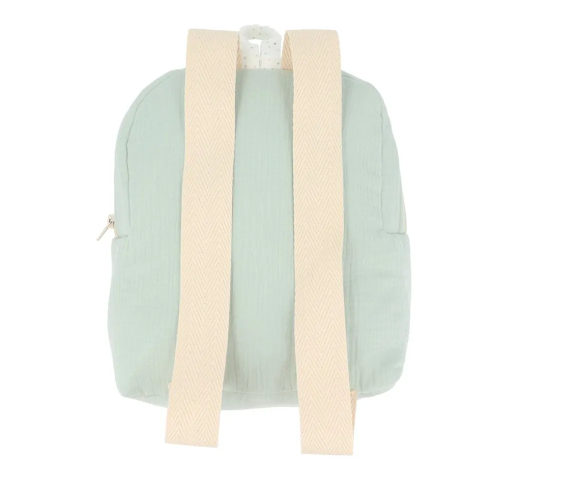 Mochila de tela ideal para llevar las mudas a la escuela infantil o primeros cursos del colegio. Se puede colgar fácilmente en una percha o gancho gracias al asa que lleva en la parte superior.
