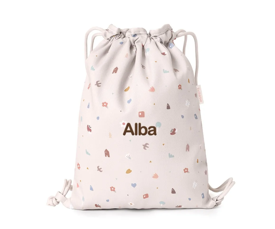 La mochila saco de tela de Tutete es ideal para los más peques que empiezan su aventura en la guardería o escuela infantil. Perfecta para llevar el almuerzo, la muda de recambio o pequeños objetos personales, esta mochila ligera y funcional es cómoda de usar y fácil de lavar.