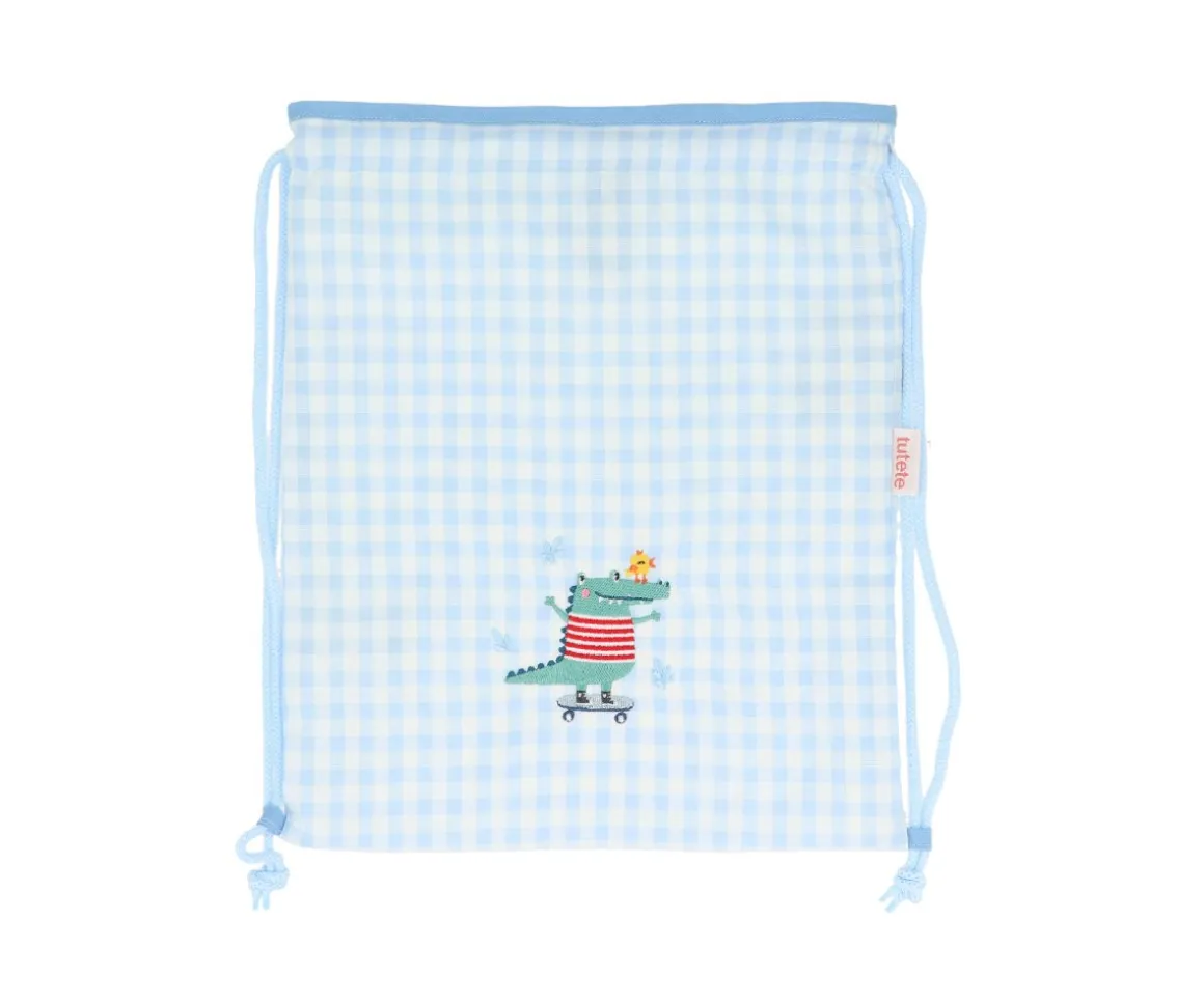 Las originales mochilas saco con dibujo bordado de las colecciones de Tutete Vuelta al Cole 2024 son ideales para llevar el almuerzo, la merienda o una muda al cole así como a actividades extraescolares.