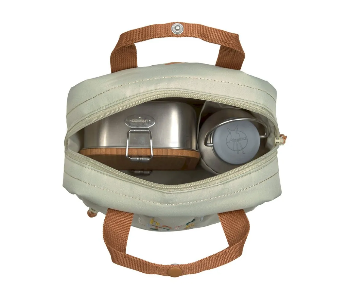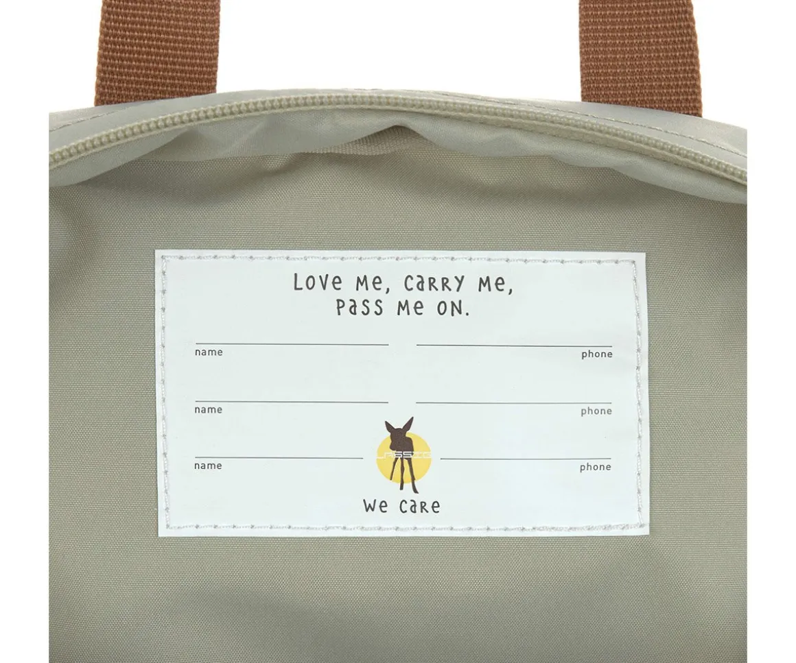 Sus correas ajustables y clip en el pecho asegura una buena sujeción. En el interior, podrás encontrar un bolsillo interno para colocar la botella de agua y una etiqueta para la información del peque.