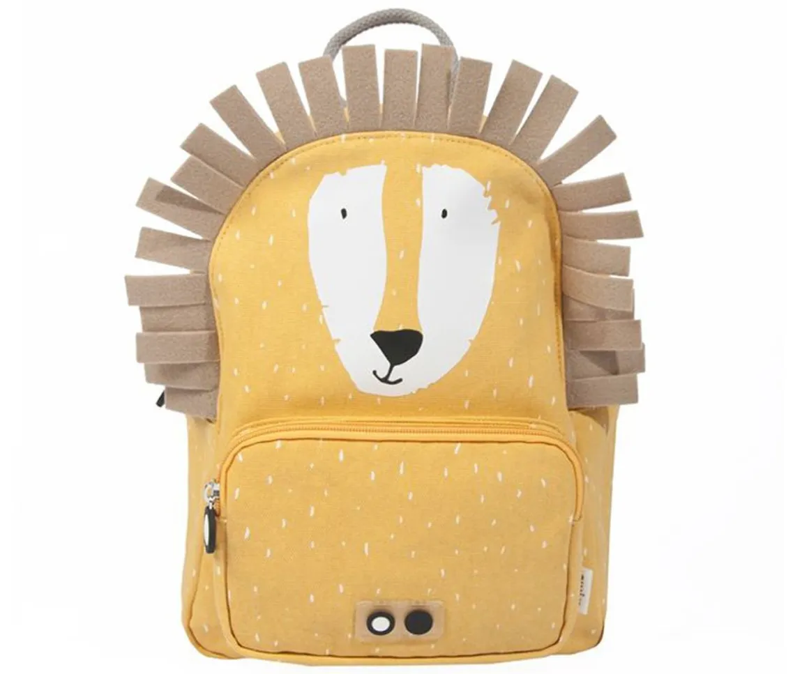 Mochila con divertido diseño para llevar al colegio o la escuela infantil con llavero personalizado a juego con este divertido leoncito.