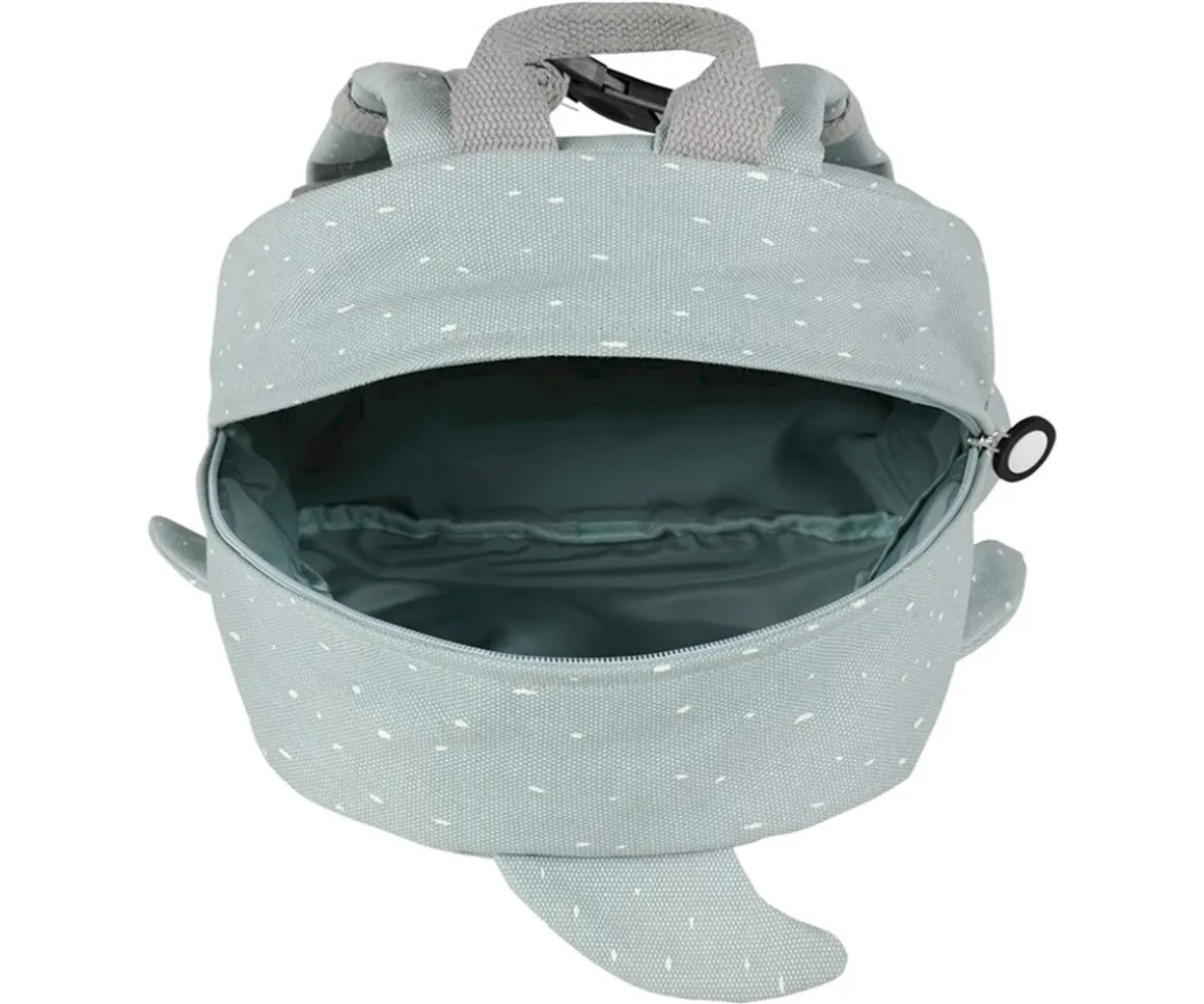 Mochila con divertido diseño para llevar al colegio o la escuela infantil con llavero personalizado a juego con este divertido tiburón.