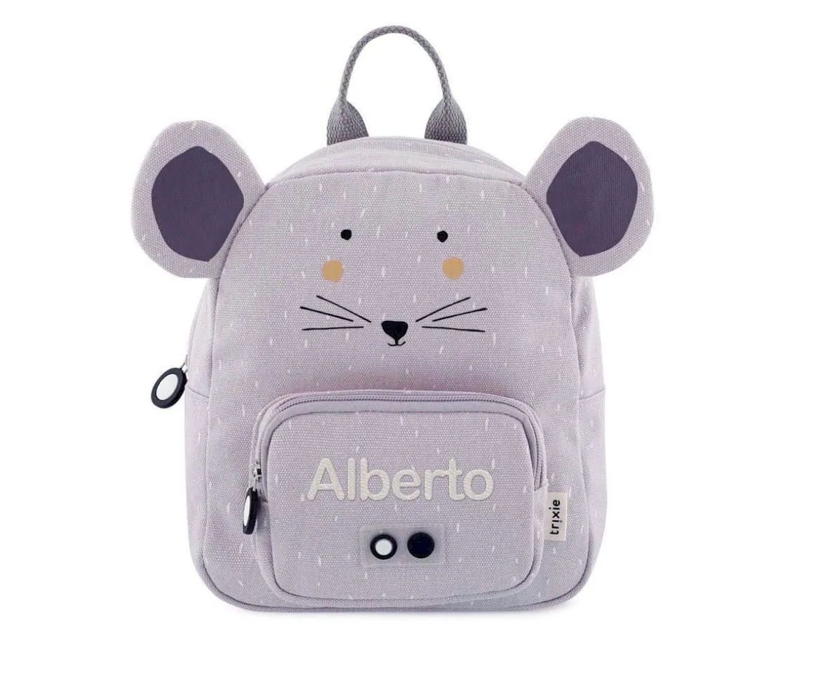 Mochila con divertido diseño para llevar al colegio o la escuela infantil con llavero personalizado a juego con este divertido ratón.