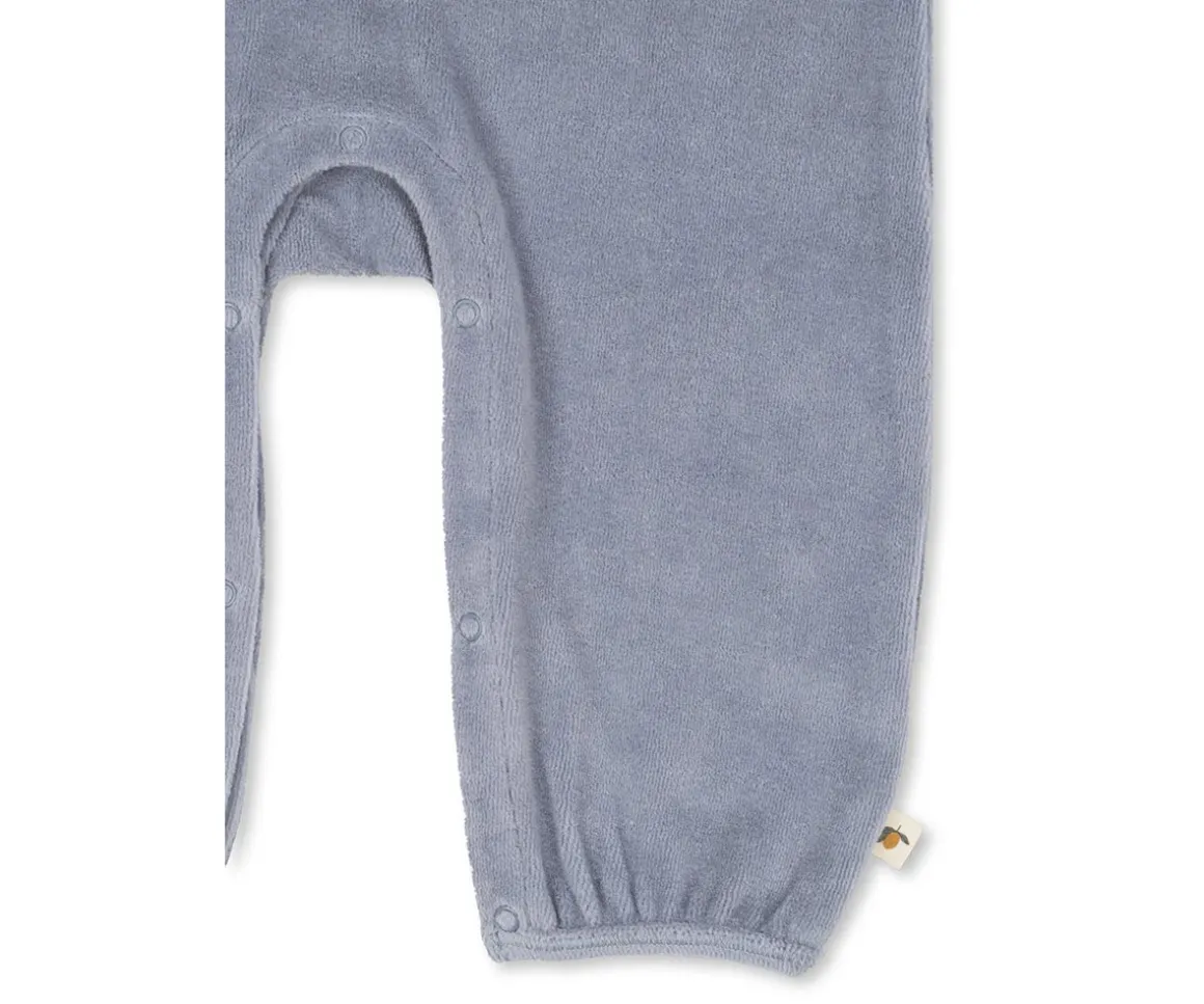 Tu peque irá bien arropadito con el mono de terciopelo suave con cuello y bordado en el pecho con un bonito osito de Konges Slojd.