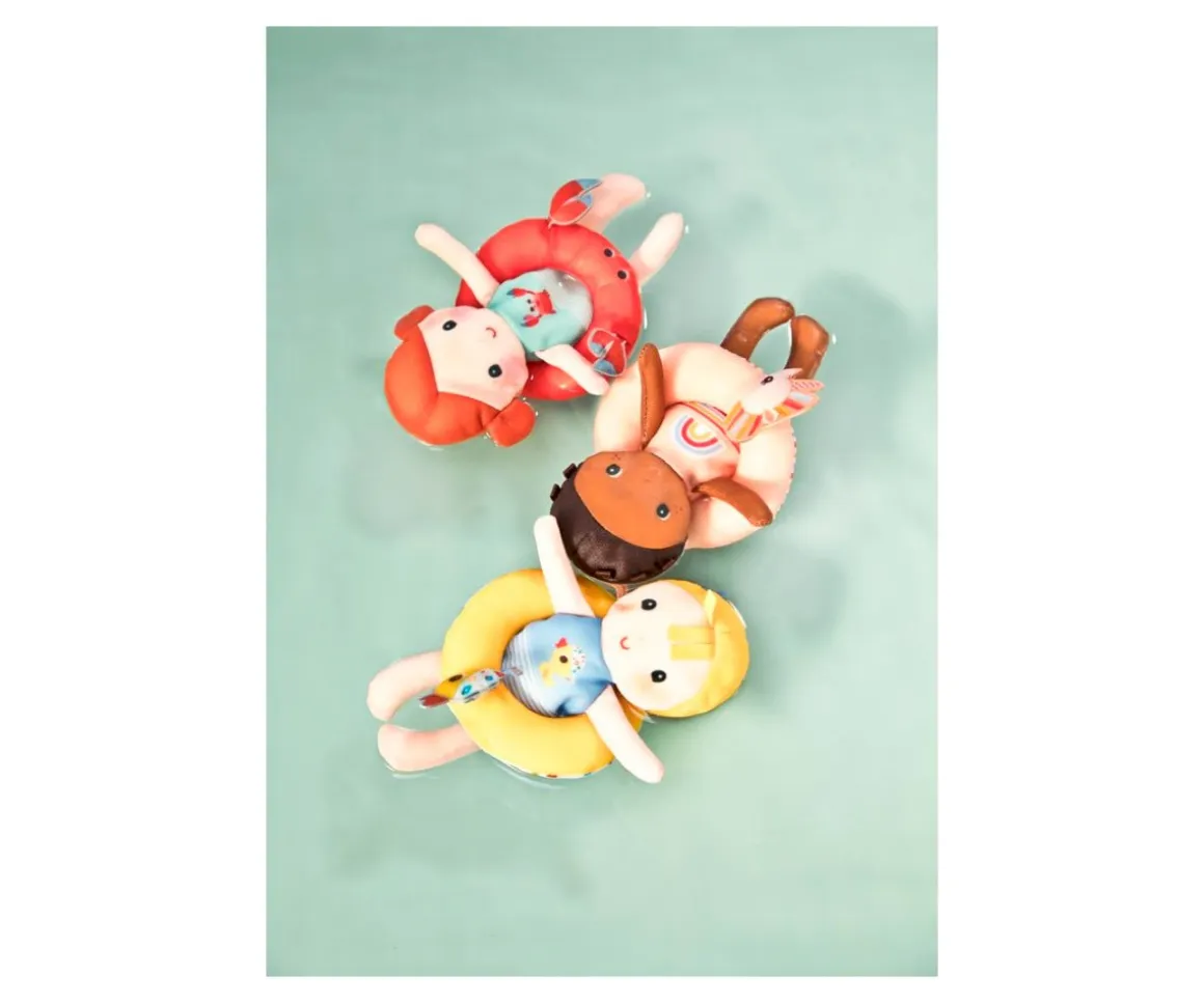 Diviértete durante el baño con esta muñeca acompañada de su inseparable flotador con forma de patito.