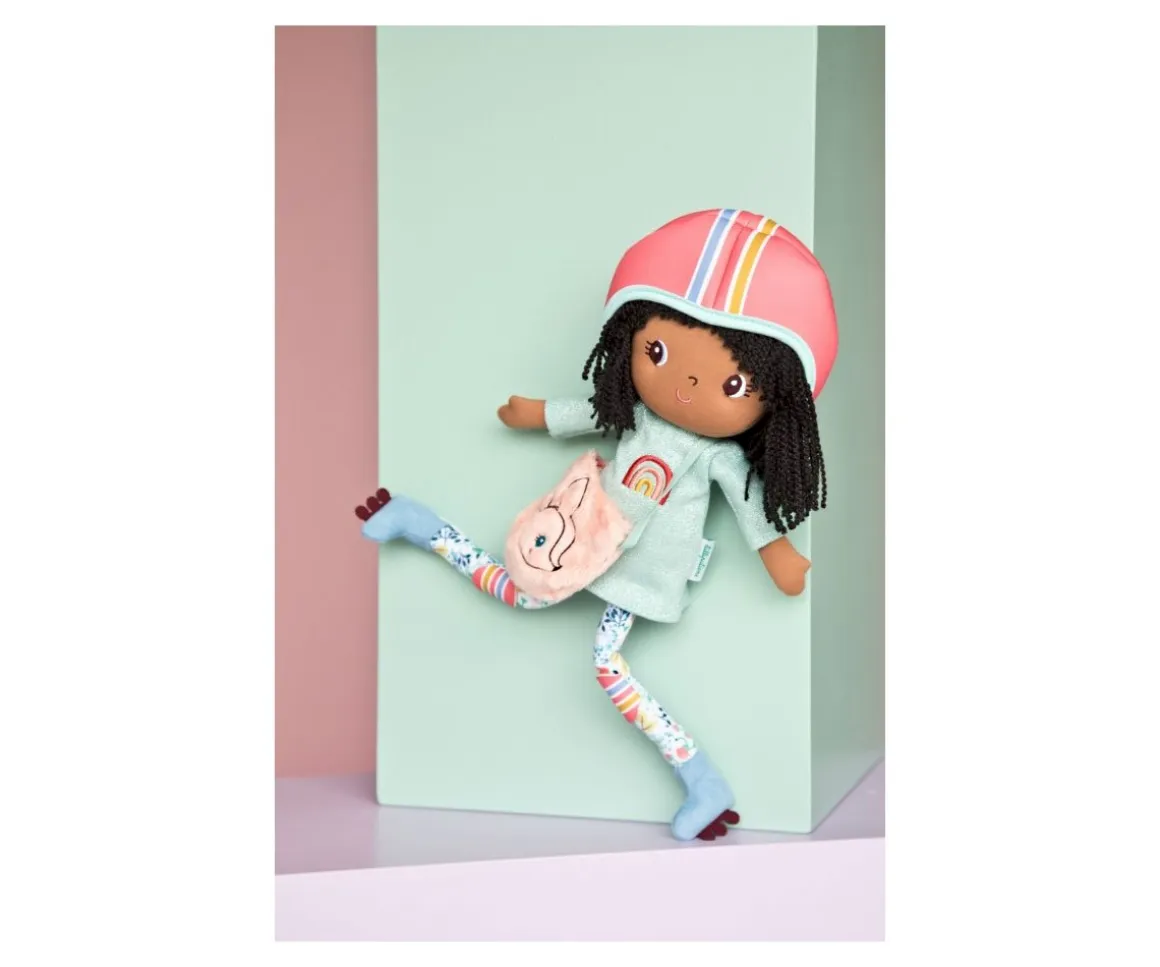 Liza lleva puesto sus rodilleras, casco y patines para salir a patinar por todas partes. Una compañera genial de juegos y aventuras de tu peque.