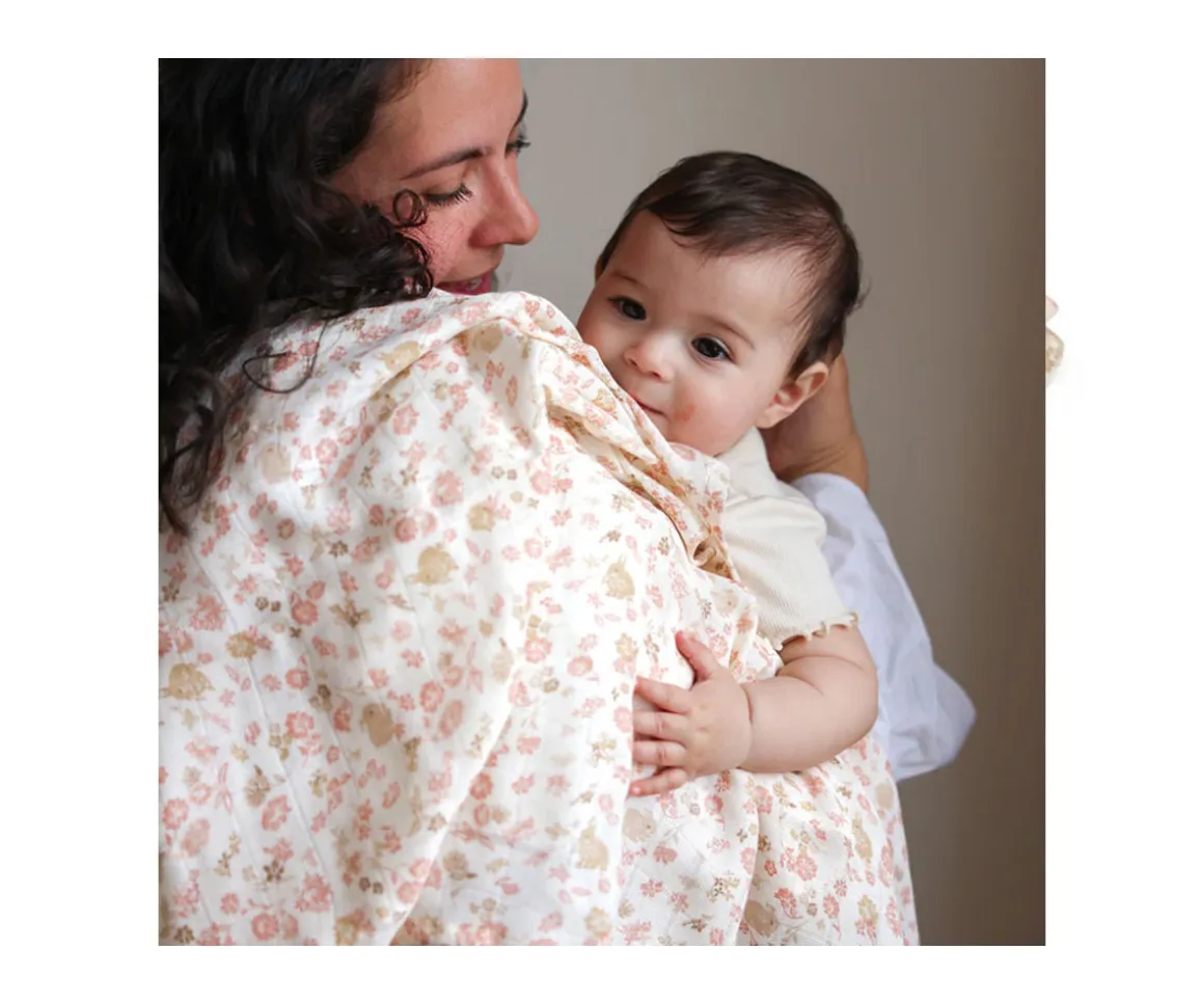 Preciosa muselina de algodón orgánico con un dulce estampado, ideal para arropar a tu recién nacido