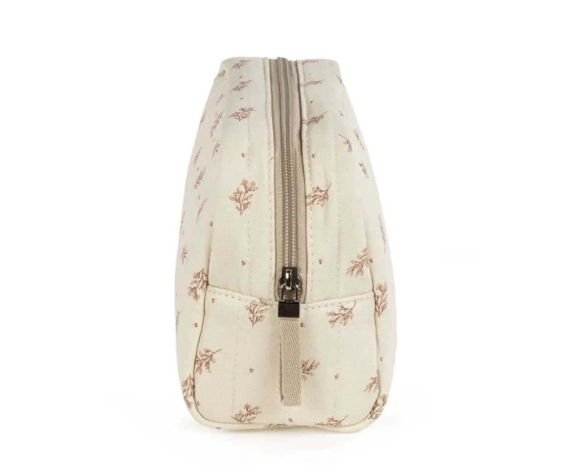 Neceser muy práctico de la colección Mimosa Pink de Walking Mum, para llevar todos los productos de aseo de tu bebé. Tiene un cierre seguro de cremallera para evitar que algo pueda salirse.