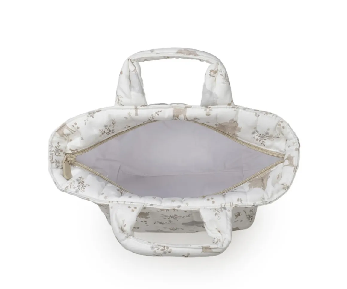 Es un diseño bonito, simple y cómodo que ofrece un espacio pequeño pero preciso para llevar justo lo que necesitas para la higiene de tu bebé, peine, lociones y otros objetos que por ser tan pequeños a veces se pierden dentro del bolso canastilla. Cuenta con un cierre de cremallera de fácil apertura.