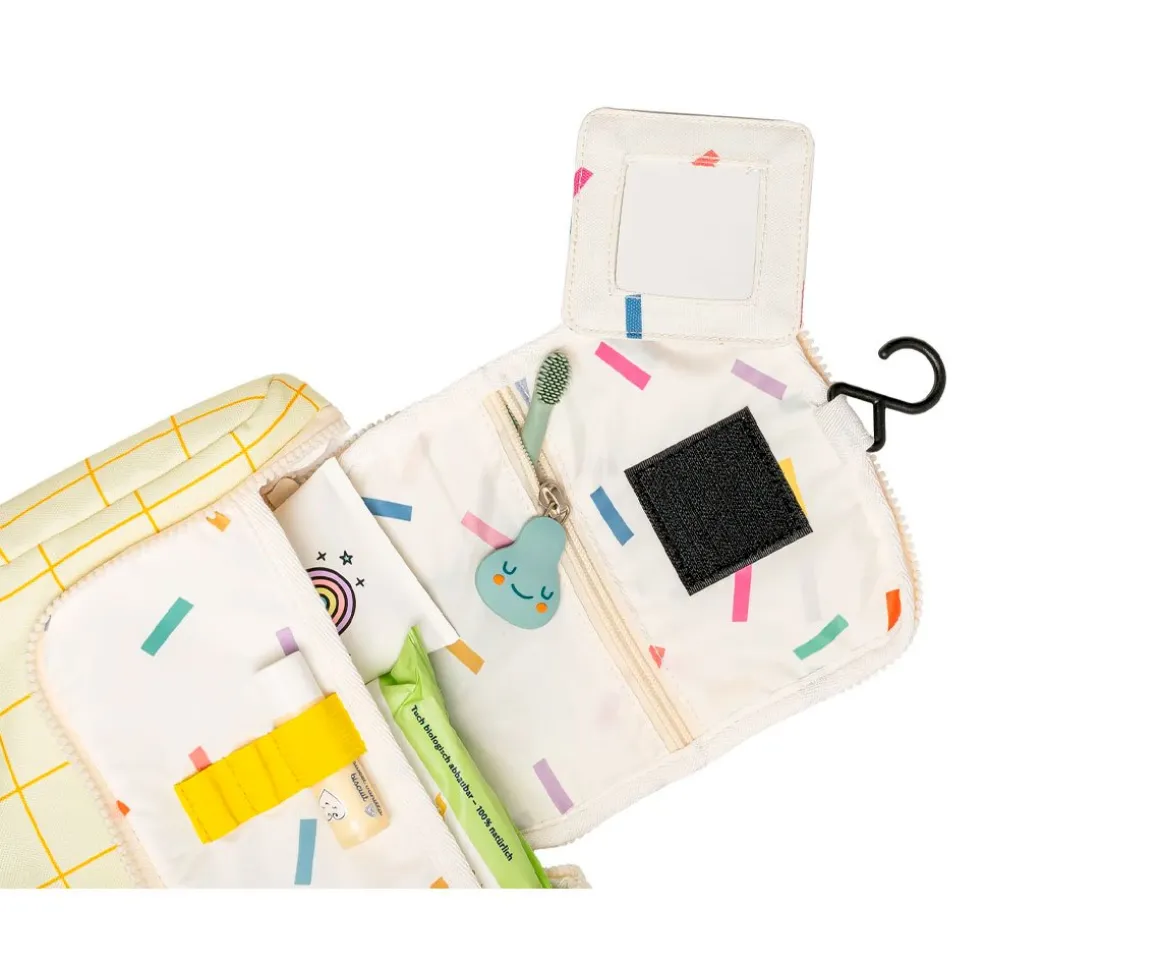 Podrás llevar todo lo que necesites para el baño en este práctico y bonito neceser ecológico de la marca The Cotton Cloud. Sus numerosos compartimentos te permitirán llevar todos los artículos de aseo y baño ordenados, e incluye un espejito y gancho, para que cuando lo dejes colgado puedas verte en cualquier parte.