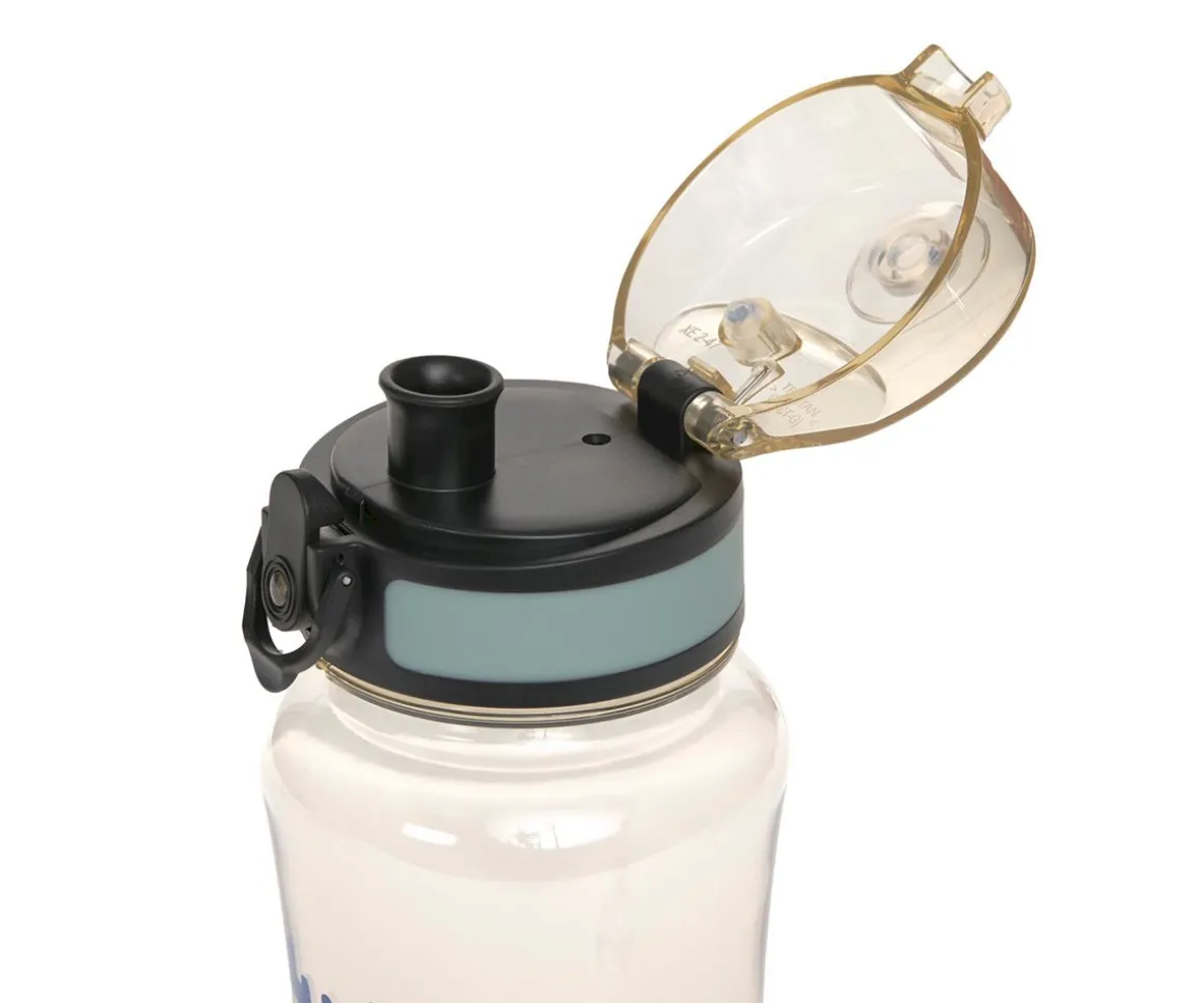 La fiambrera tiene un compartimento extraíble para meter distintos snacks: en la bandeja superior hay espacio para frutas y alimentos más pequeños, mientras que el compartimento inferior no está dividido y ofrece suficiente espacio para sándwiches y bocatas. La botella viene a juego y es perfecta para llevar agua o zumos.