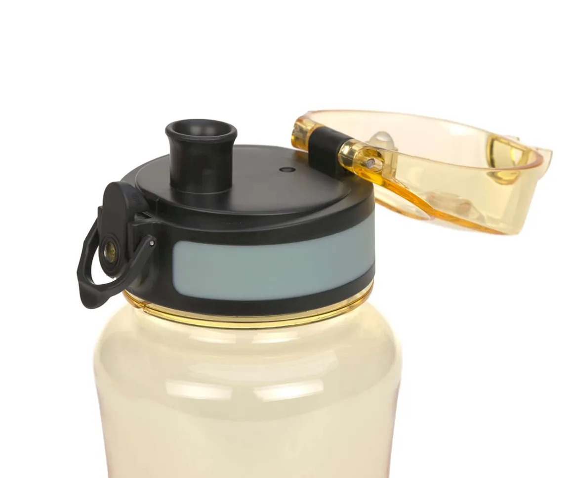La fiambrera tiene un compartimento extraíble para meter distintos snacks: en la bandeja superior hay espacio para frutas y alimentos más pequeños, mientras que el compartimento inferior no está dividido y ofrece suficiente espacio para sándwiches y bocatas. La botella viene a juego y es perfecta para llevar agua o zumos.