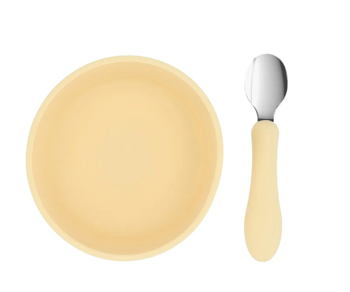 Incluye un babero de silicona con bolsillito recogedor, un bol de silicona con ventosa y una cuchara con mango de silicona y cabeza de acero inoxidable, tres básicos diseñados para hacer que la hora de comer sea más cómoda, limpia y segura.