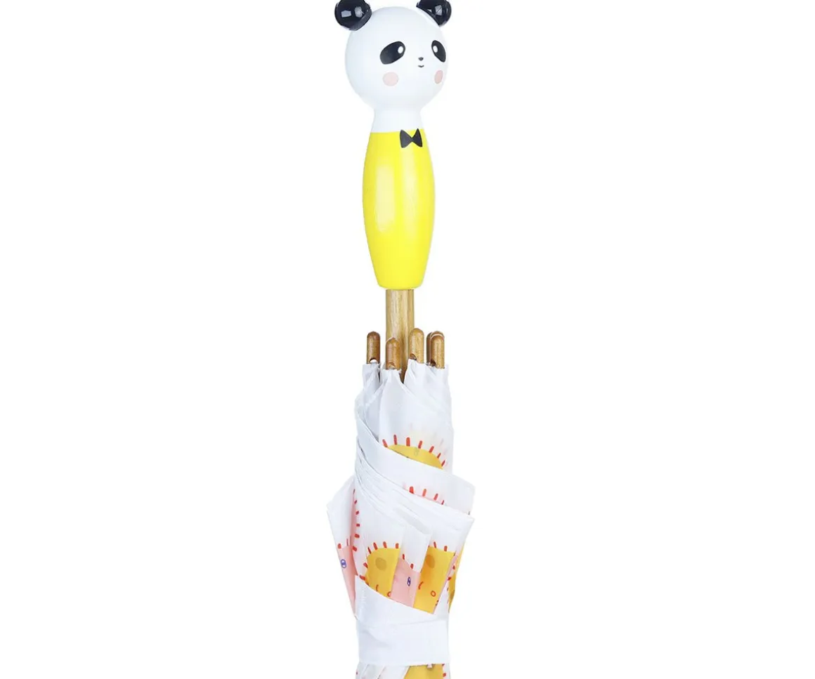 Coqueto paraguas, con mango con la cabeza de una figura, para alegrar los días de lluvia.