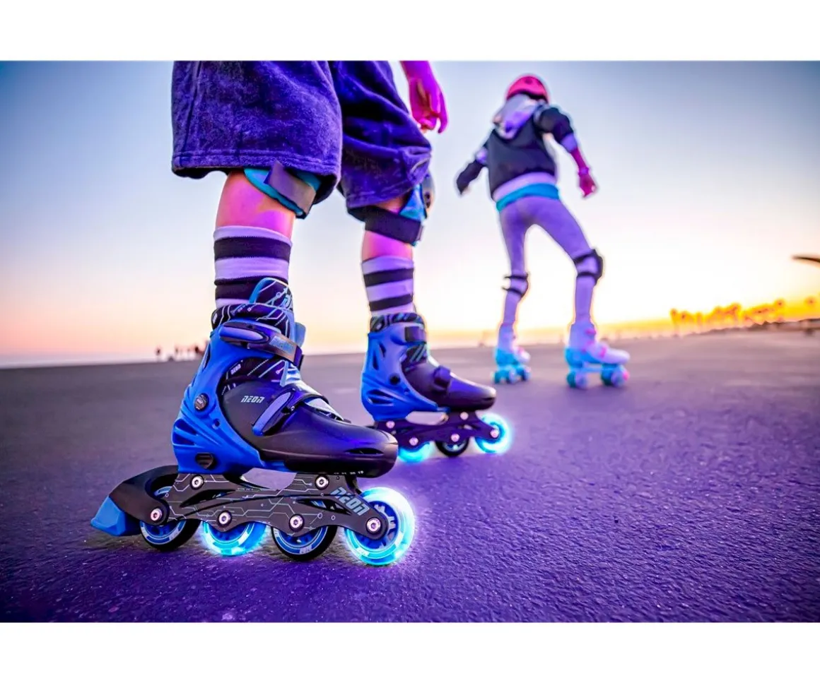 Los patines Yvolution Combo son los patines de ruedas 2 en 1 perfectos para niños. Ajustable hasta en 4 tallas (de la 34 a la 37) con una simple pulsación, son fáciles de poner y descubrir las primeras sensaciones de deslizamiento. Las ruedas traseras modulares en línea o en paralelo evolucionan sin herramientas y ofrecen una estabilidad adaptada al progreso del niño.