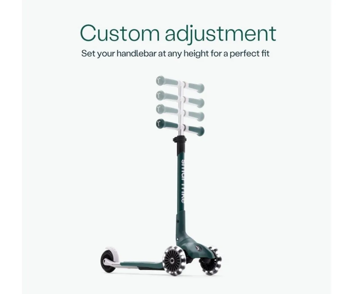 Su base extensible en dos posiciones lo que lo hace un patinete evolutivo que tu peque podrá usar desde los 3 hasta los 9 años.