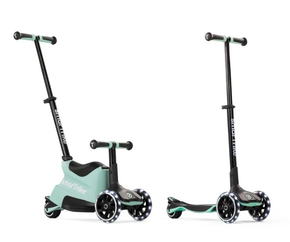 Comienza usando este patinete como un vehículo dirigido por los padres. Cuando tu peque sea más independiente conviértelo en scooter para que empuje con sus piernas, posteriormente lo puedes transformar en un patinete con manillar extensible.