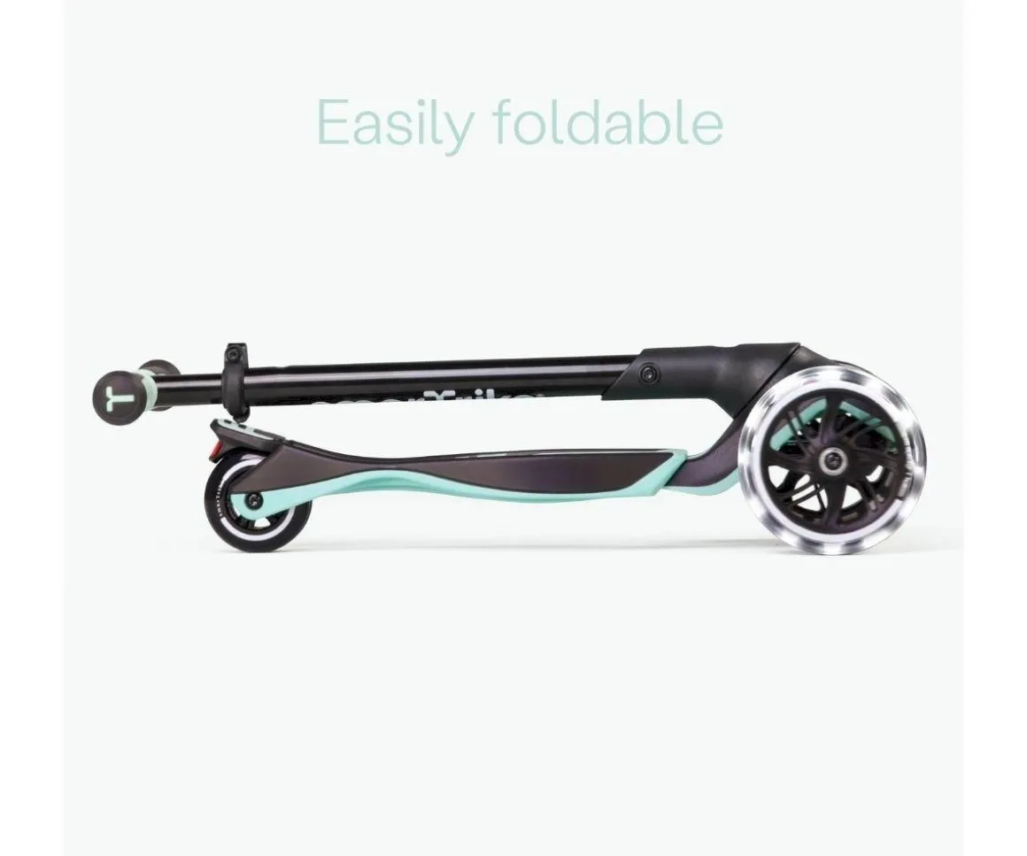 Debajo de su asiento cuenta con un compartimento para que los pequeños conductores guarden sus artículos más preciados. Además tiene un plegado rápido y compacto, cuenta con ruedas de led de gran tamaño que lo hacen apto para todo tipo de terrenos.
