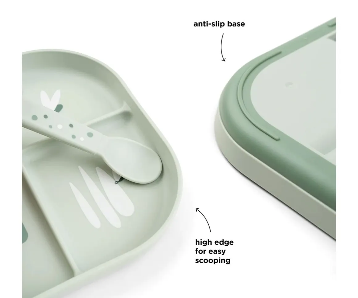 Separar los alimentos ayudará a su hijo a detectar y comprender los diferentes sabores y texturas. El borde elevado facilitará a los peques recoger la comida, a la vez que la base antideslizante evitará que el plato se desplace.