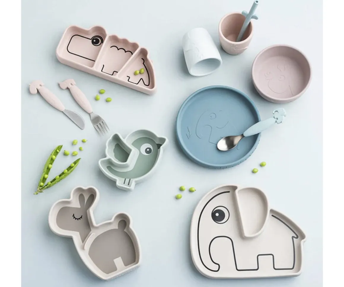 Hecho de silicona segura para alimentos y libre de BPA, con base de succión para evitar derrames. Con dos compartimentos y bordes redondeados, es perfecto para organizar y recoger alimentos.