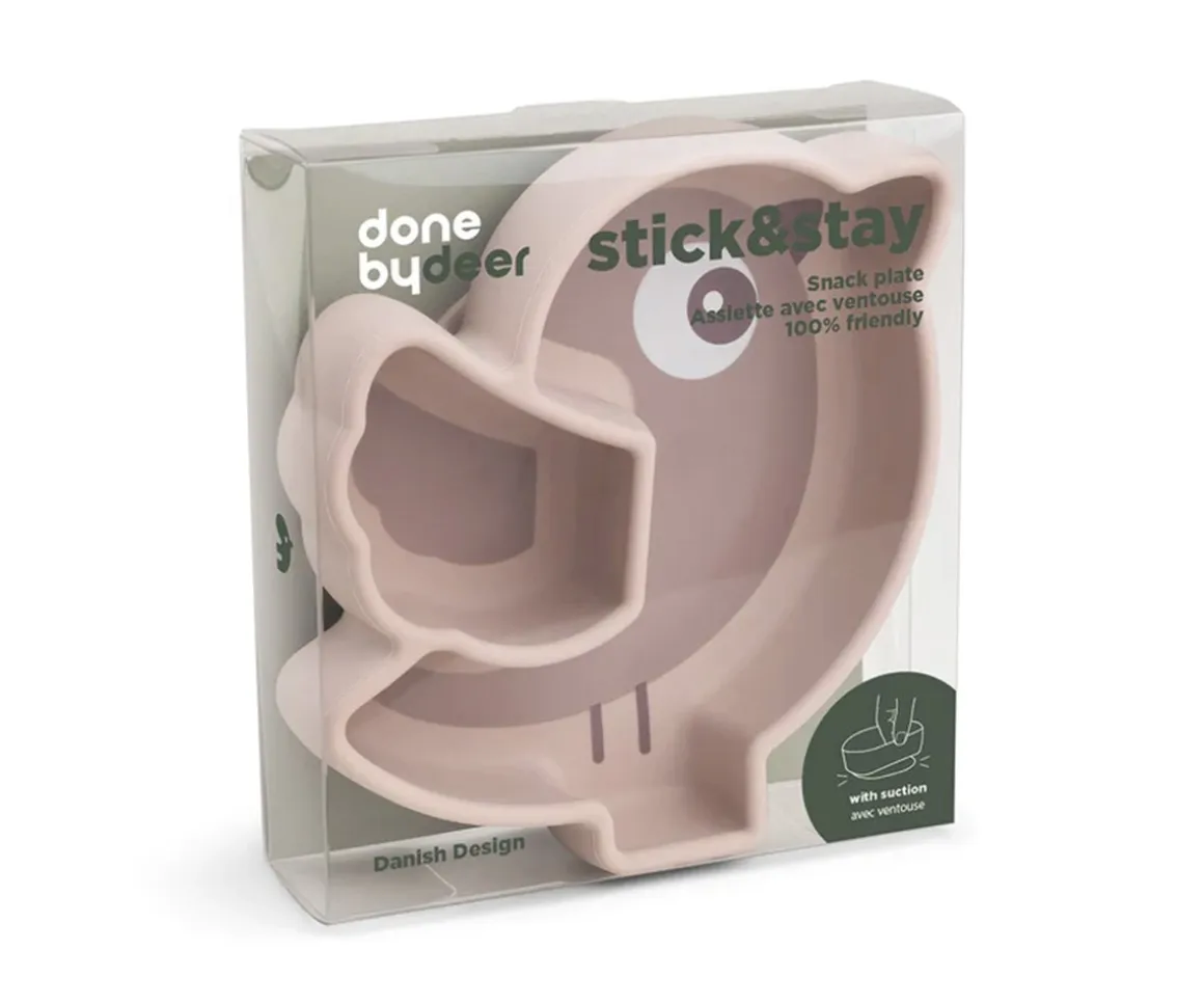 Descubre el plato snack Birdee Stick&Stay rosa empolvado: seguro, funcional y con estilo.
