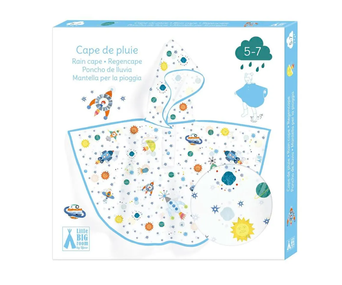 Podrás combinar este bonito poncho de lluvia con los paraguas de la colección Djeco que podrás ver pinchando