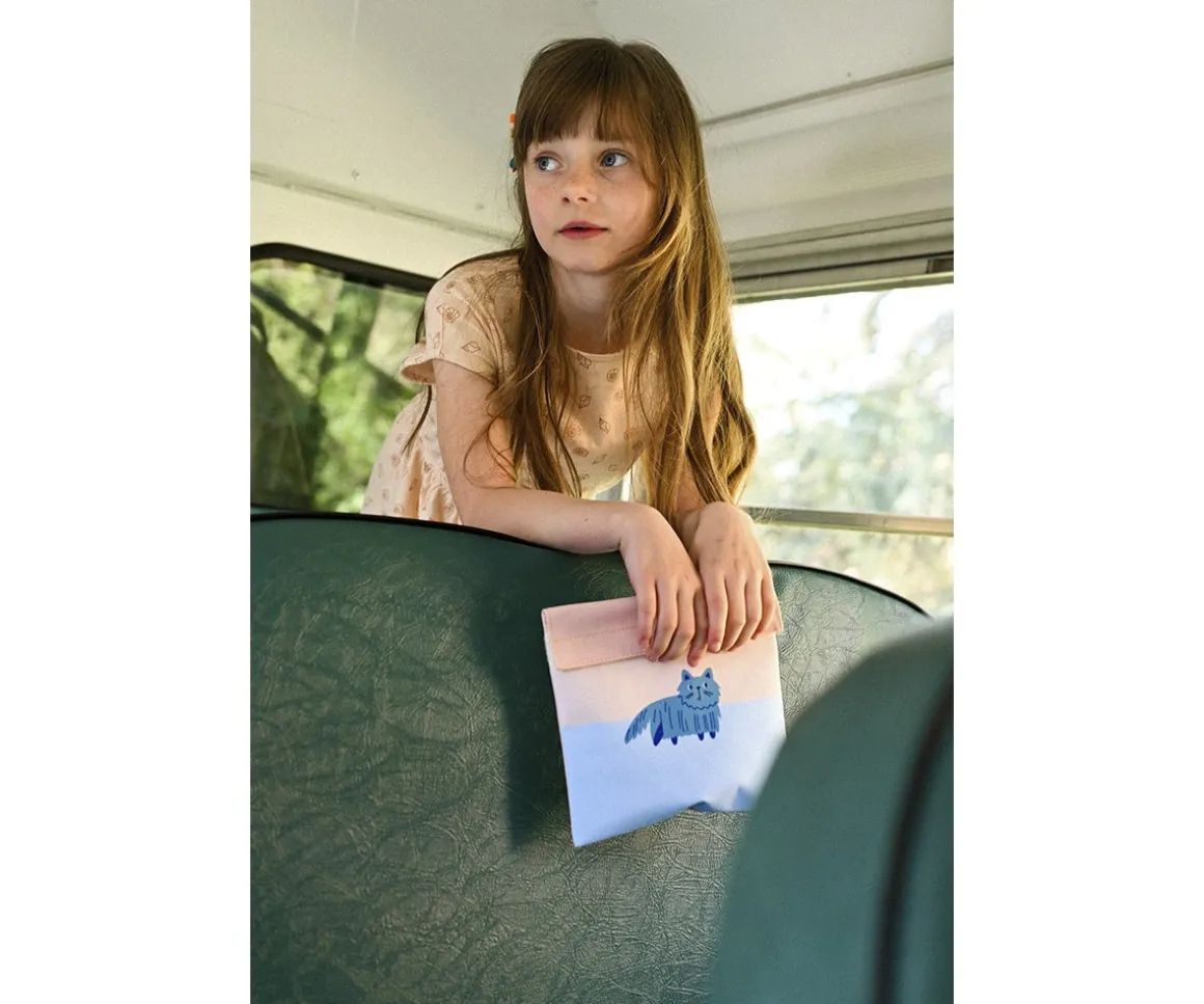 Bolsita porta alimentos The Cotton Cloud con diseño Meowtiful Cats, divertido y original. Tiene la medida perfecta para llevar sándwich, frutas o snacks.