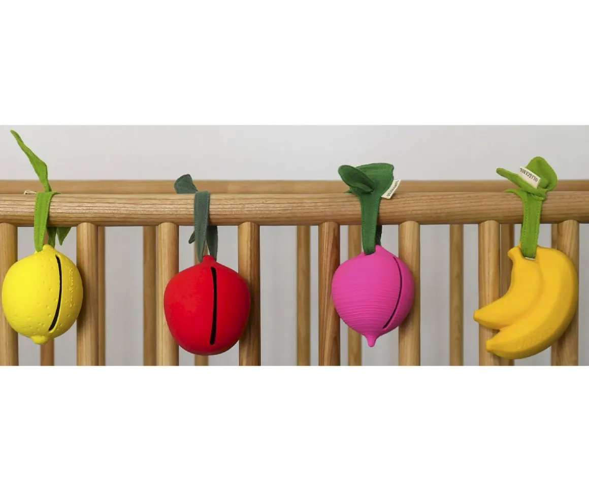 ¡Conoce el portachupetes Pepa the Apple de Oli&Carol! Perfecto para mantener el chupete de tu peque limpio y accesible mientras estás en movimiento. Hecho de caucho natural y algodón orgánico certificado por OEKO-TEX, es una opción práctica e higiénica para cada padre y madre.