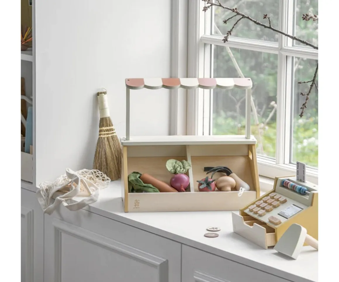 Puesto de mercado fabricado en madera para divertirse sólo o con amigos a vender fruta, ropa o lo que imaginen los peques.