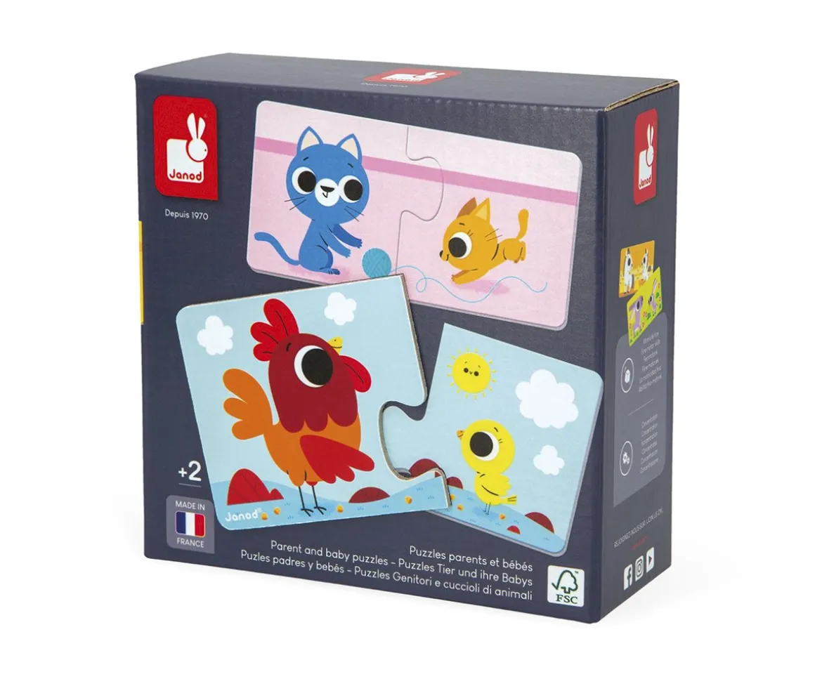 Con 12 puzzles en total, los niños desarrollan la motricidad fina y la concentración mientras reconocen los animales, sus bebés y los sonidos. Gracias a sus piezas grandes serán fáciles de manipular para las pequeñas manos.