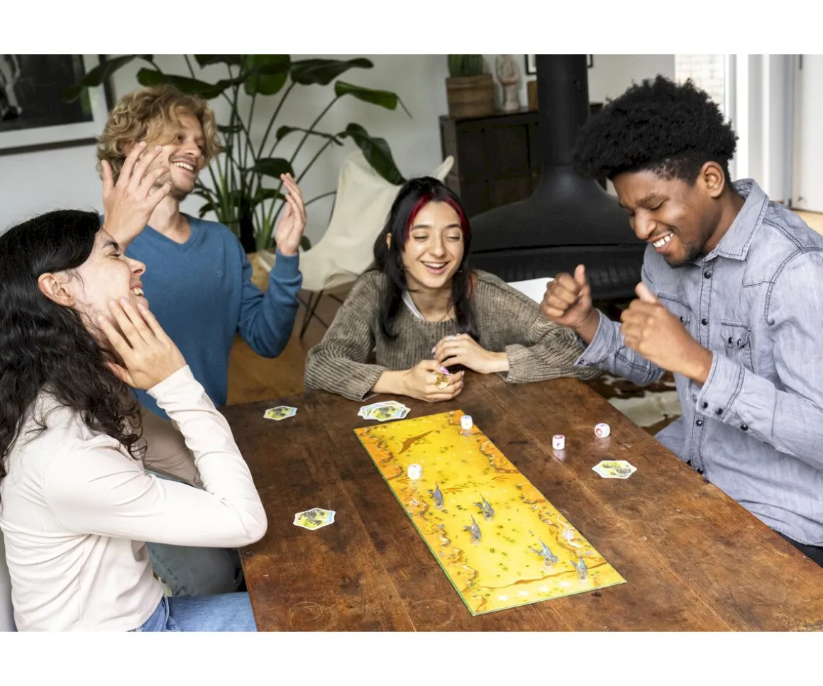 Raptor Race es un juego de mesa táctico divertido y emocionante en el que todo puede cambiar en unos pocos movimientos.