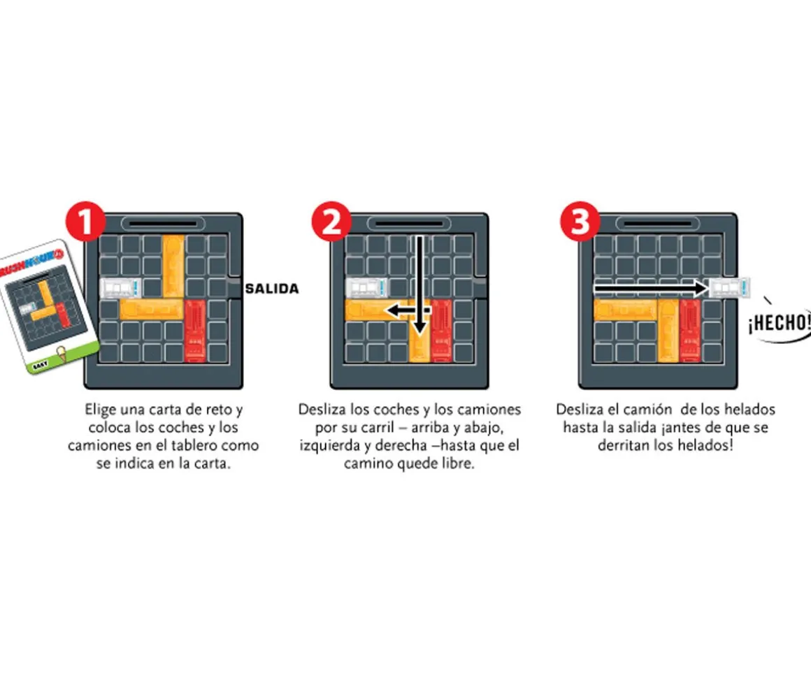 - Incluye: 40 desafíos,1 camión de helados, 15 vehículos de bloqueo, 1 tablero