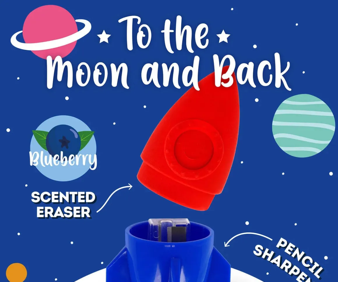 El Sacapuntas con Goma “To the Moon and Back” de Legami afila lápices, borra fallos con suavidad y… ¡huele a arándanos!